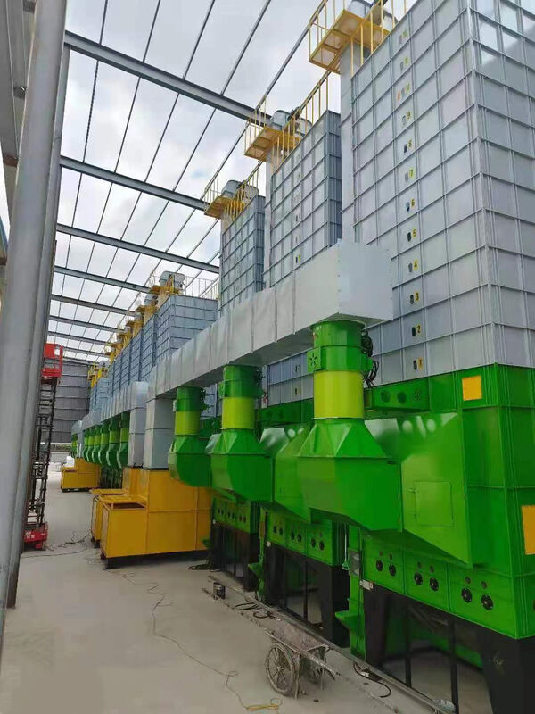 2) 6 Bộ máy sấy loại 30 tấn được kết nối liên tiếp, không khí nóng sẽ đi qua ống dẫn